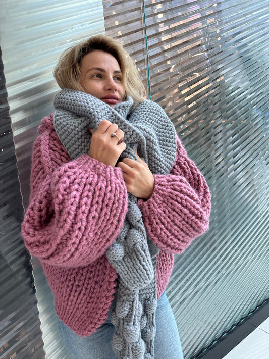 Chunky Hand Knit Wool Women Cardigan – Cozy Feel, Timeless Shape