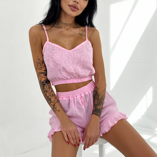 2 Pieces Muslin Loungewear Set: Cami Top and Shorts