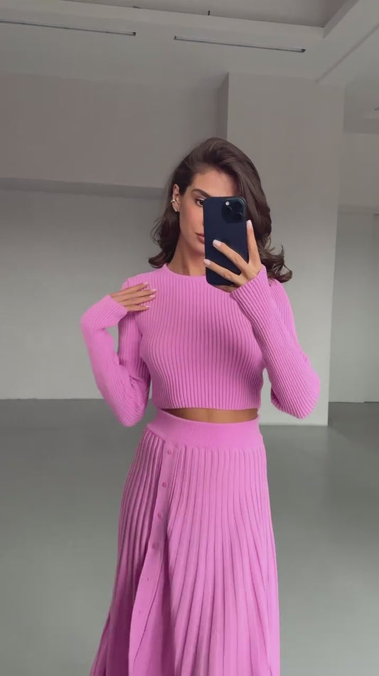 Casual Fall Knit Set: Sweater & Flared Skirt