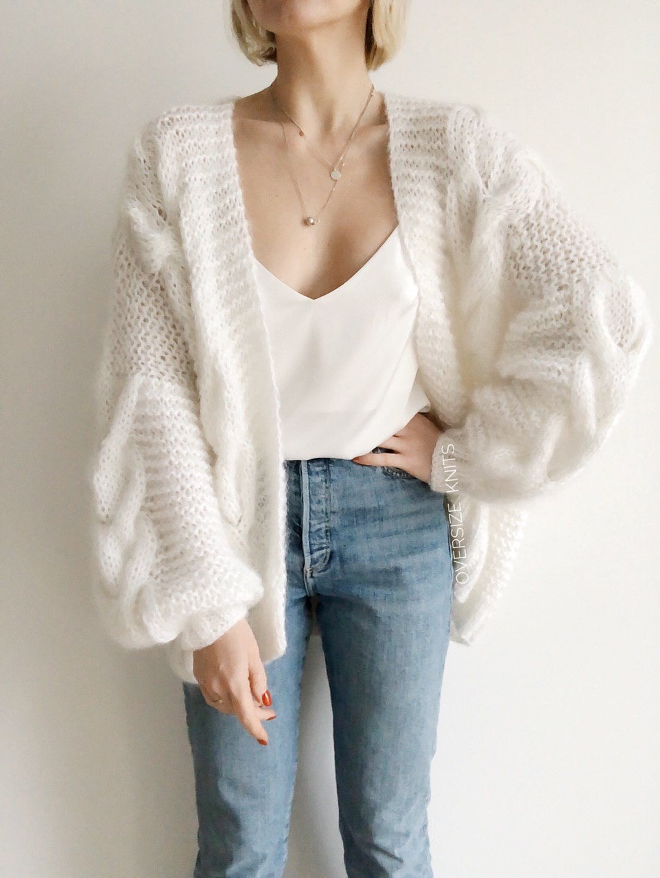 Cable knit Mohair cardigan. Trendy women cable knit oversized hand knitted jacket
