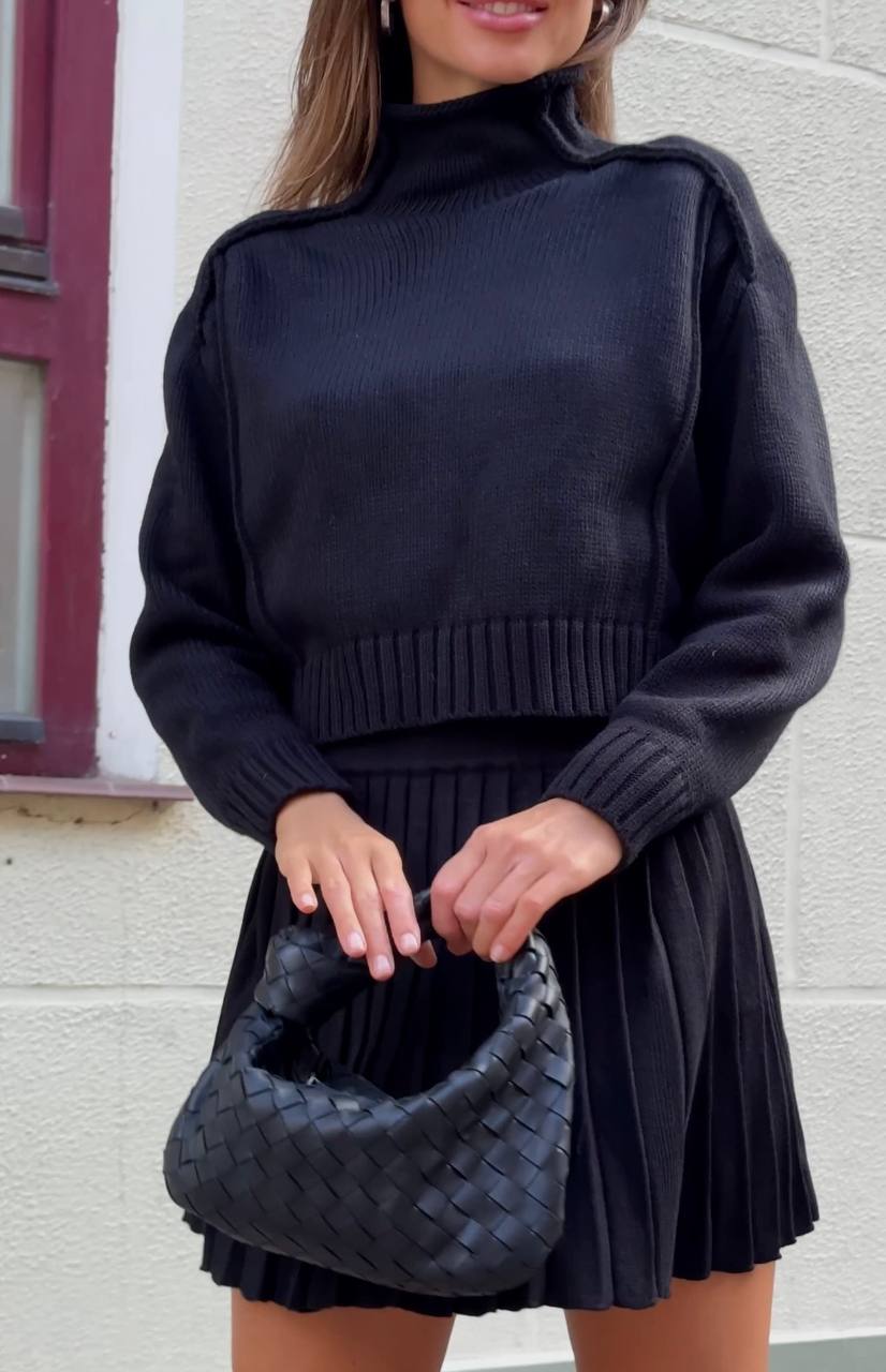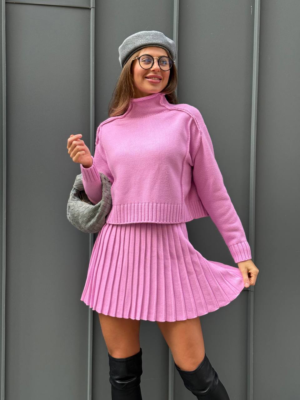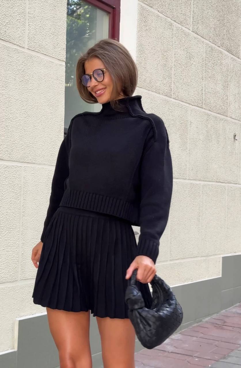 Casual Fall Knit Set: Sweater & Flared Skirt