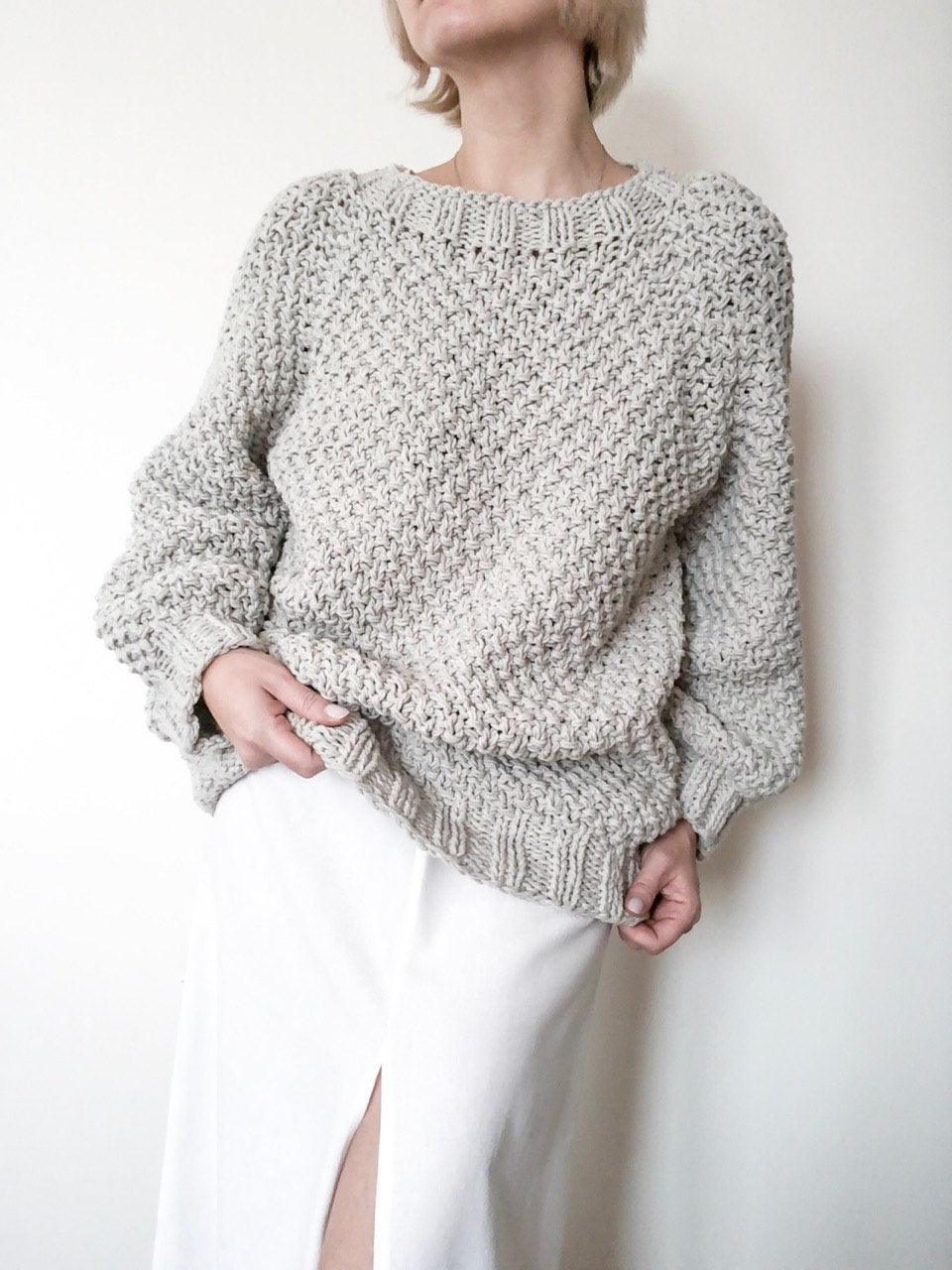 Timeless and tactile, this hand-knitted chunky sweater features a richly textured stitch that feels as good as it looks. With its relaxed silhouette, classic crew neckline, and neutral oatmeal tone, it’s the ultimate wear-everywhere essential for colder months.