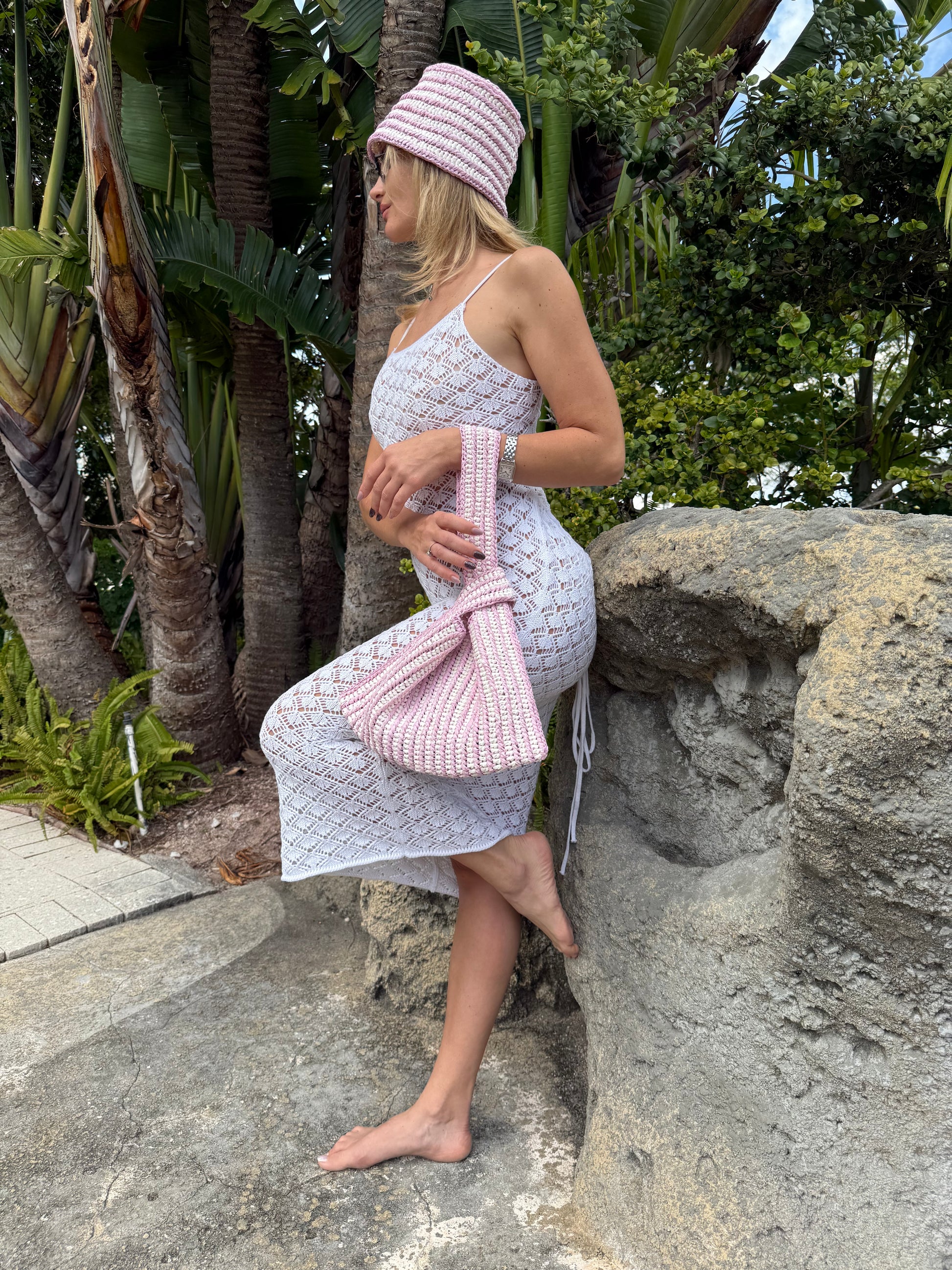 Raffia Hand Crafted Set. Raffia Bucket Hat and Raffia Knot Bag