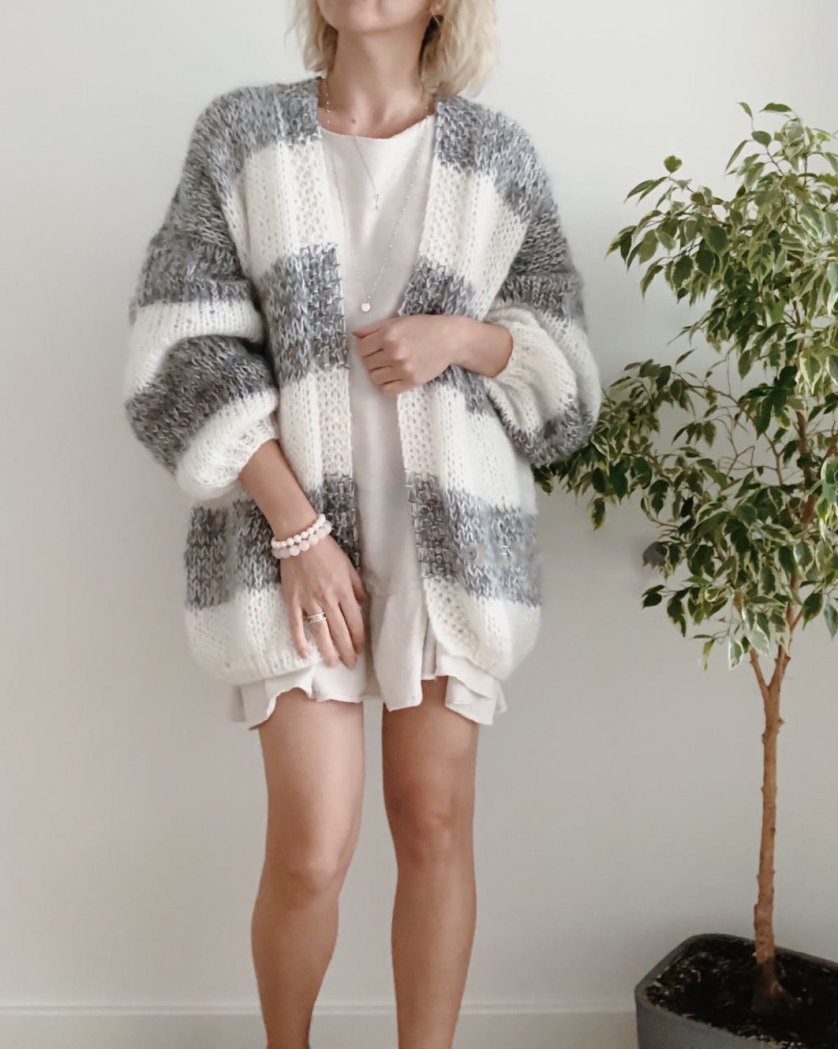 Beautiful hand knitted women stripe cardigan. Soft, warm and very stylish.