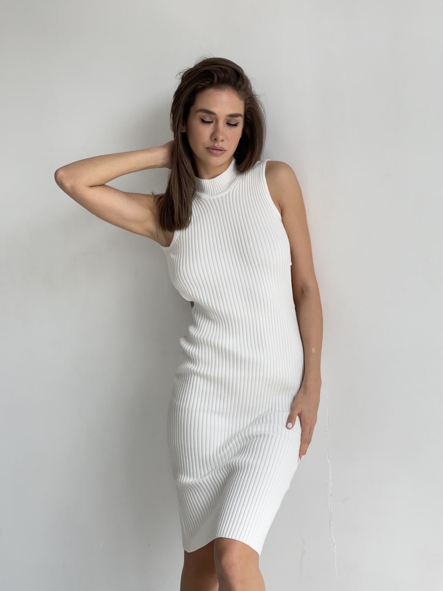 High-Neck Casual Open Back Dress – Ribbed Viscose Knit