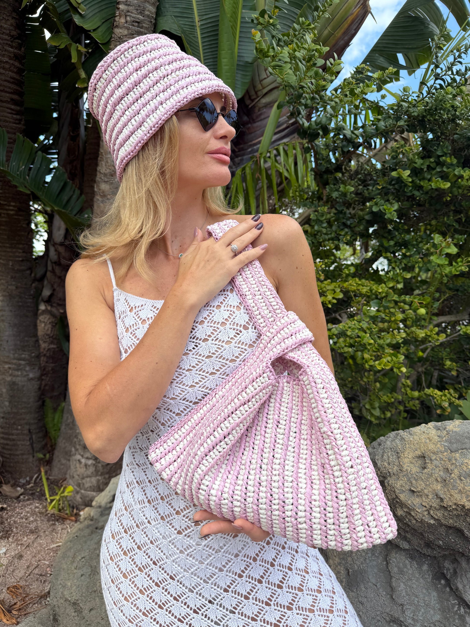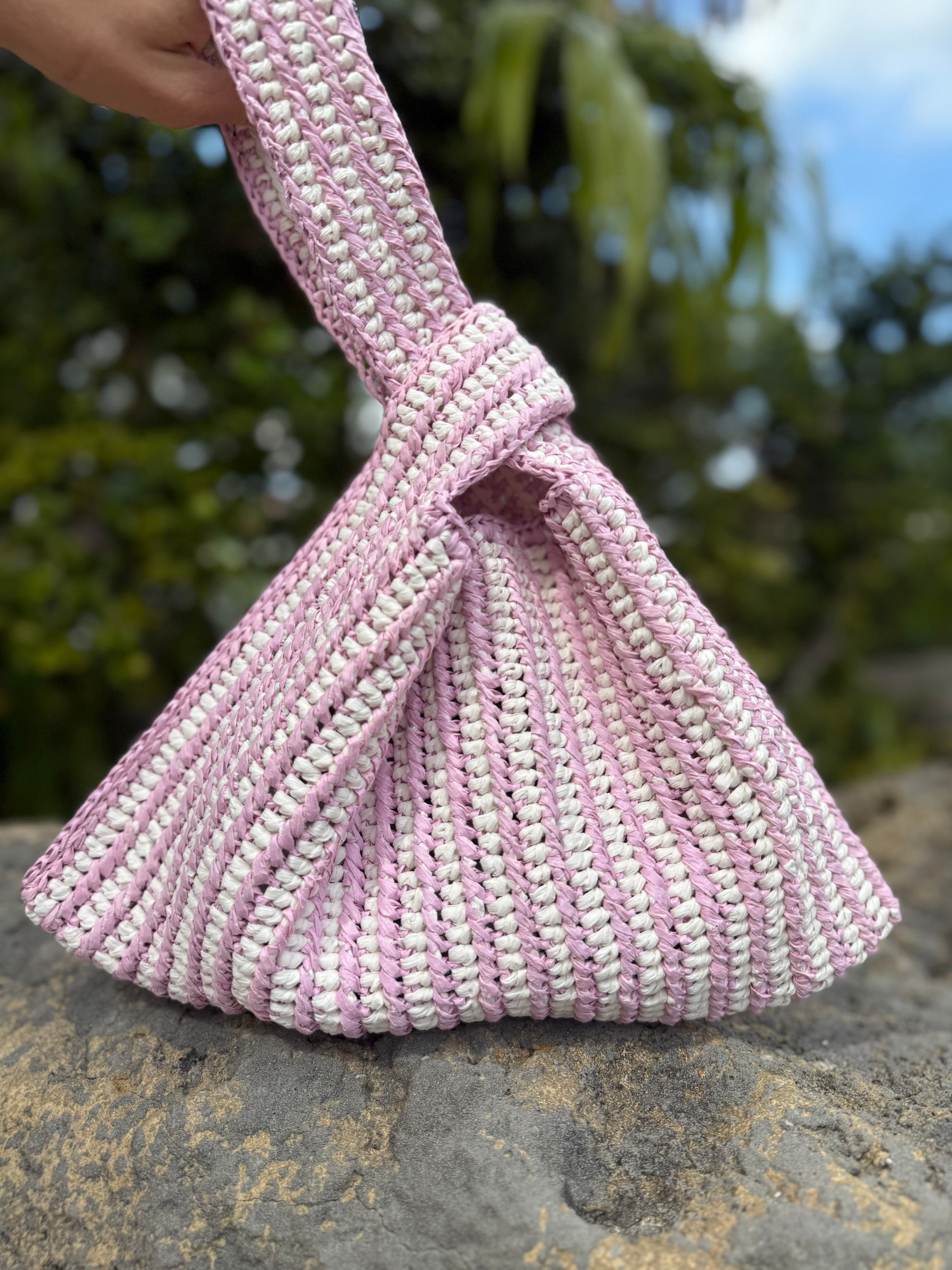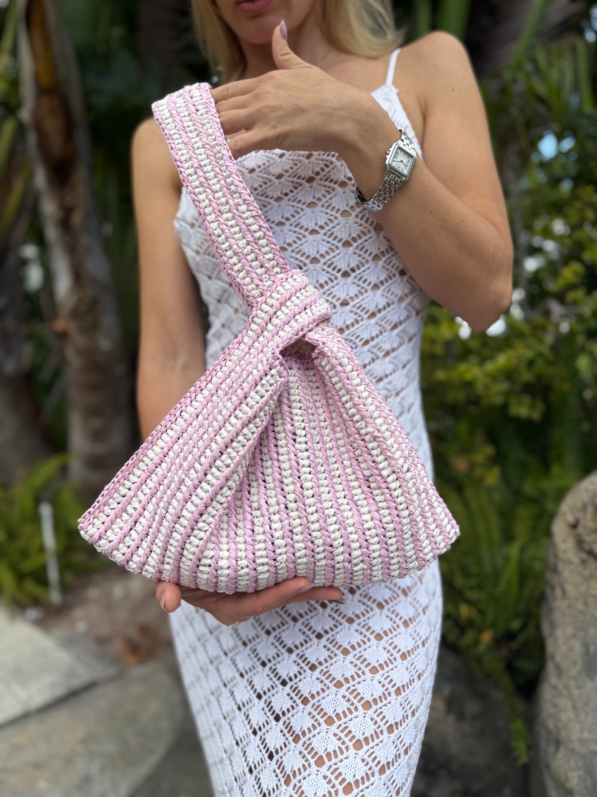 Summer elegance with this exclusive handmade crochet knot bag from natural raffia! This trendy tote bag is fully handcrafted.