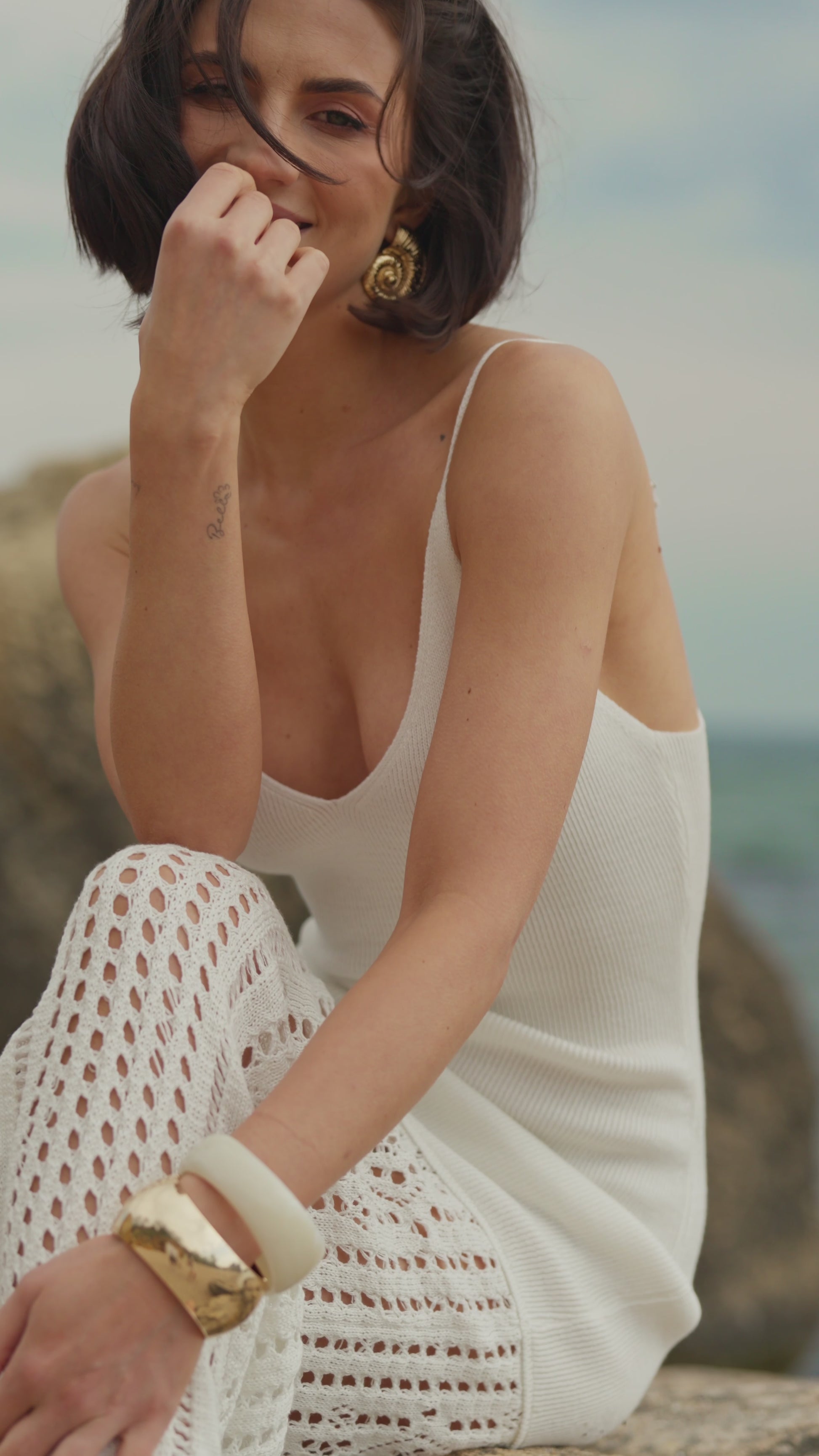 Simplicity meets elegance in our Minimalist Knit Beach Dress in soft sand beige or white color. This two-texture design features a smooth ribbed-knit top and an intricate crochet-style bottom that subtly reveals your silhouette while keeping things breathable and effortlessly chic.