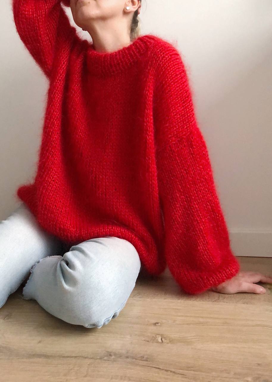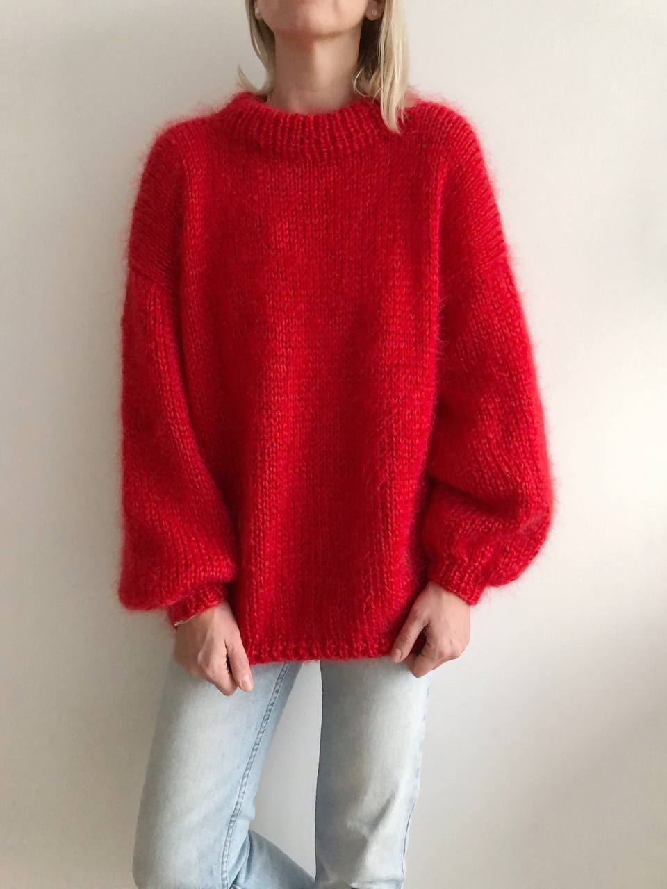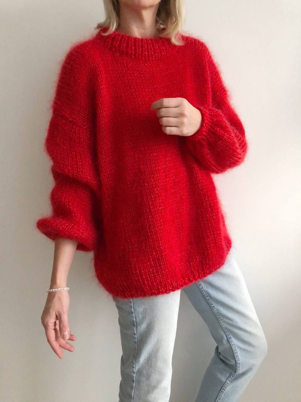 Make a statement with this ultra-soft hand-knitted sweater in striking cherry red. Its airy mohair texture and oversized silhouette deliver warmth without weight, while the rich color adds instant energy to any outfit. Designed for comfort, crafted with care - this piece brings together bold fashion and cozy simplicity.